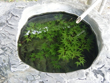 モミジが手水場の水受けに沈めてあったりと、趣というか、遊び心が楽しい。